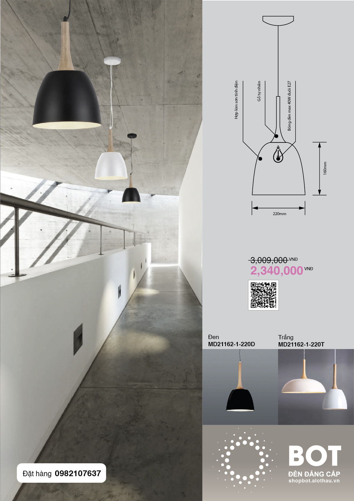 Đèn thả BOT mini / Trắng Đèn thả BOT mini / Đen