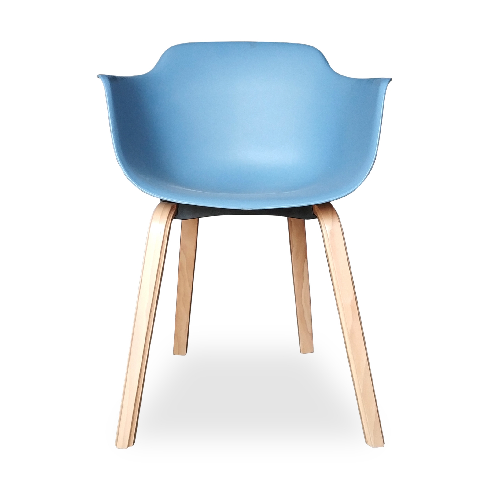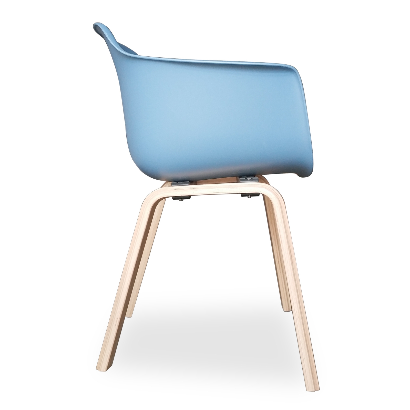 Ghế nhựa đúc nguyên khối có thành 2 bên nâng cao tạo thành tay vịn. Chân được làm từ gỗ Beech tự nhiên chắc chắn, mang dáng dấp phong cách Bắc Âu thời gian gần đây. Ghế gồm có 2 phần tách rời là chân và mặt ngồi, được bắt vít cố định khi lắp ráp hoàn chỉnh.